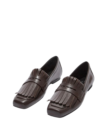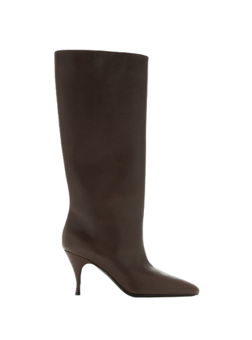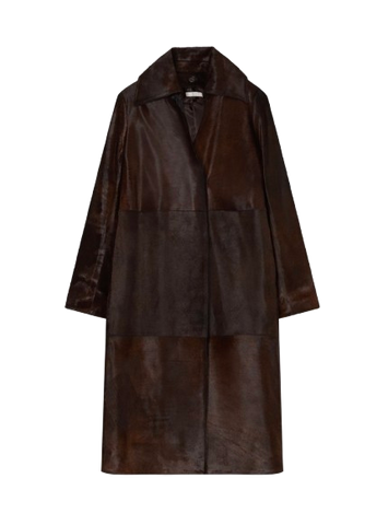 Her world is built in polished leather: sharp trenches, fluid trousers, sculpted boots. It’s tactile minimalism with an edge.