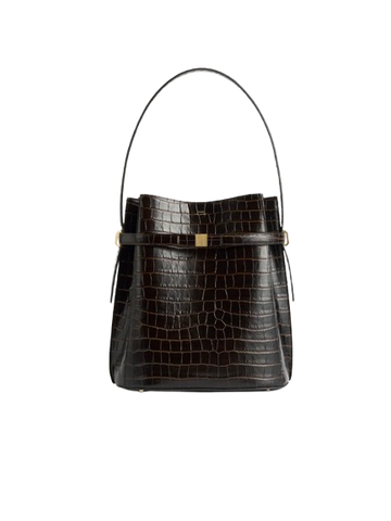 On her: A leather trench that could stop traffic, tailored trousers, and a croc-embossed anything.