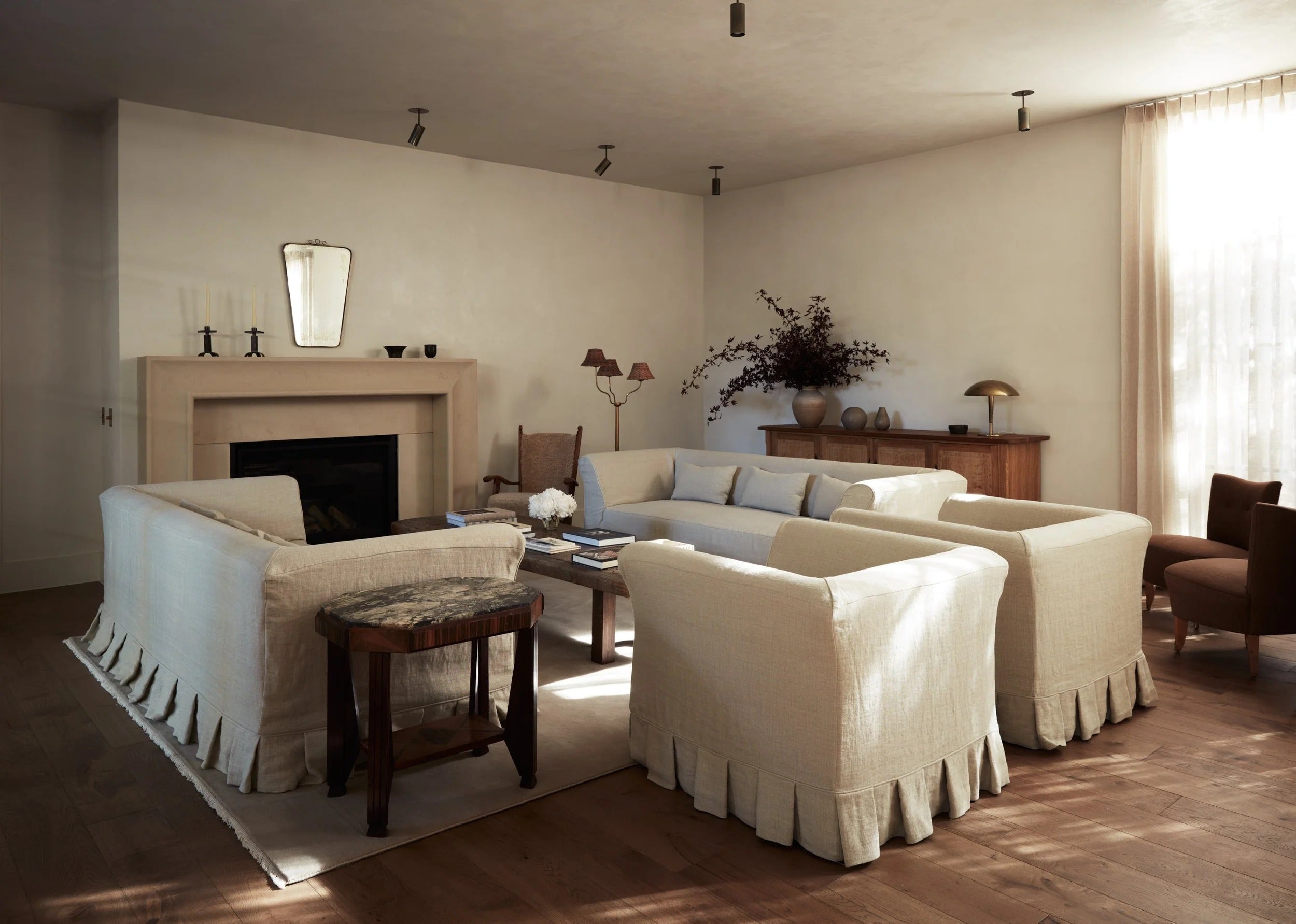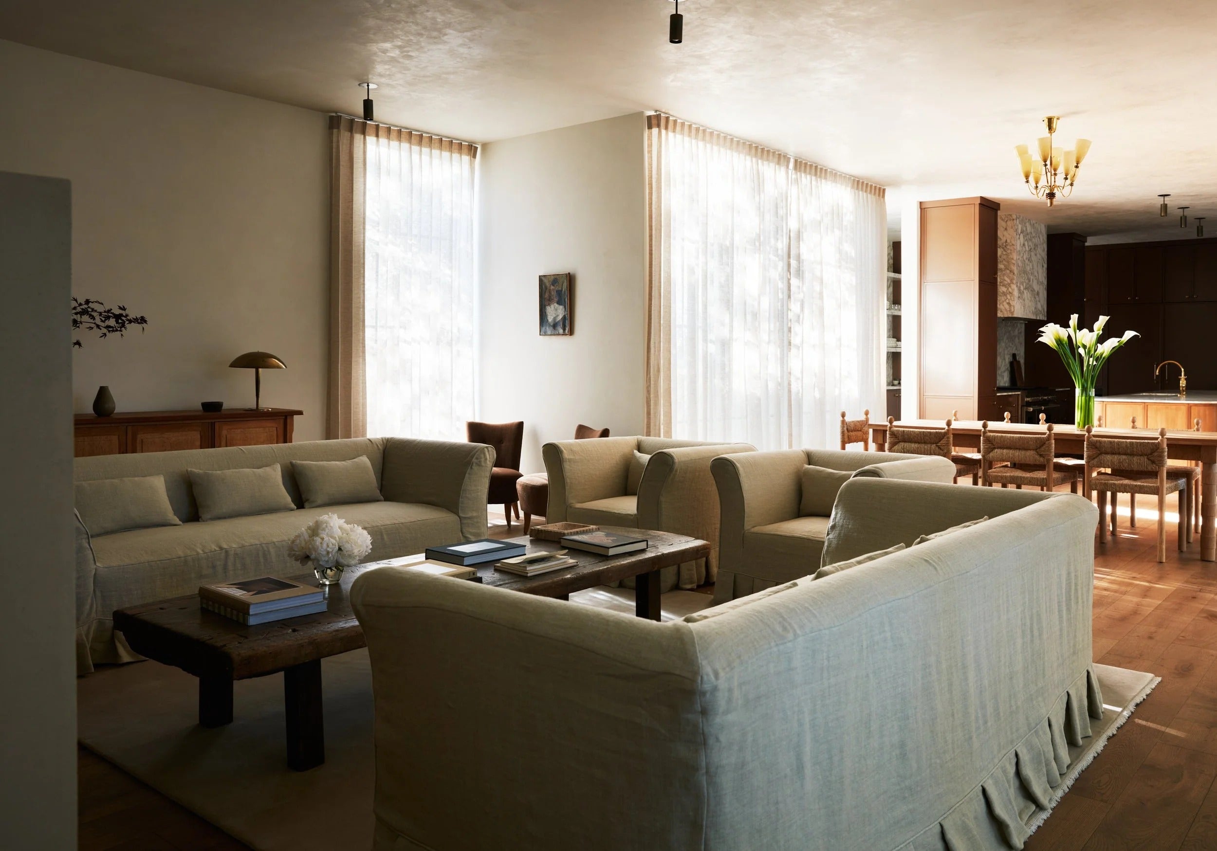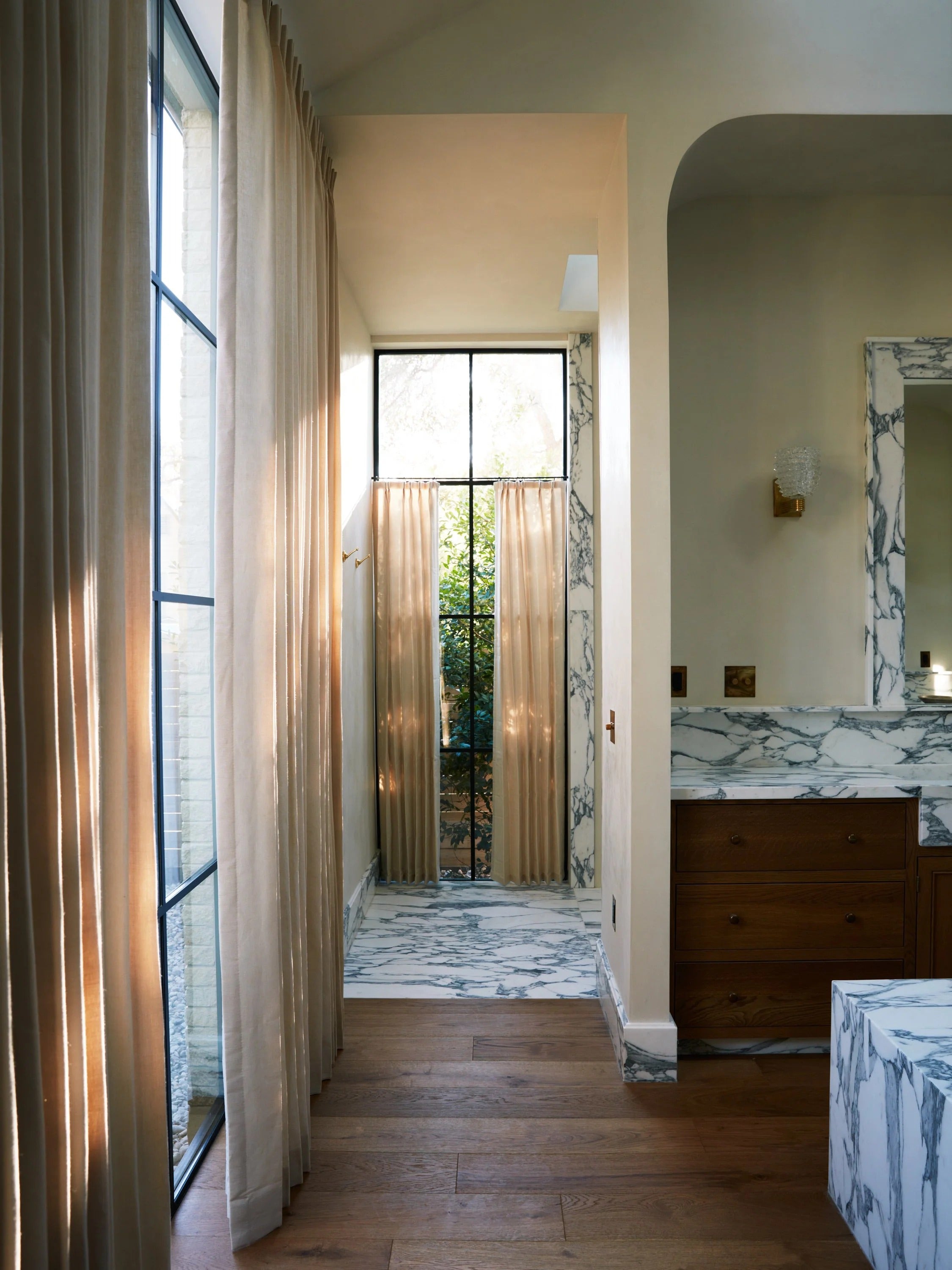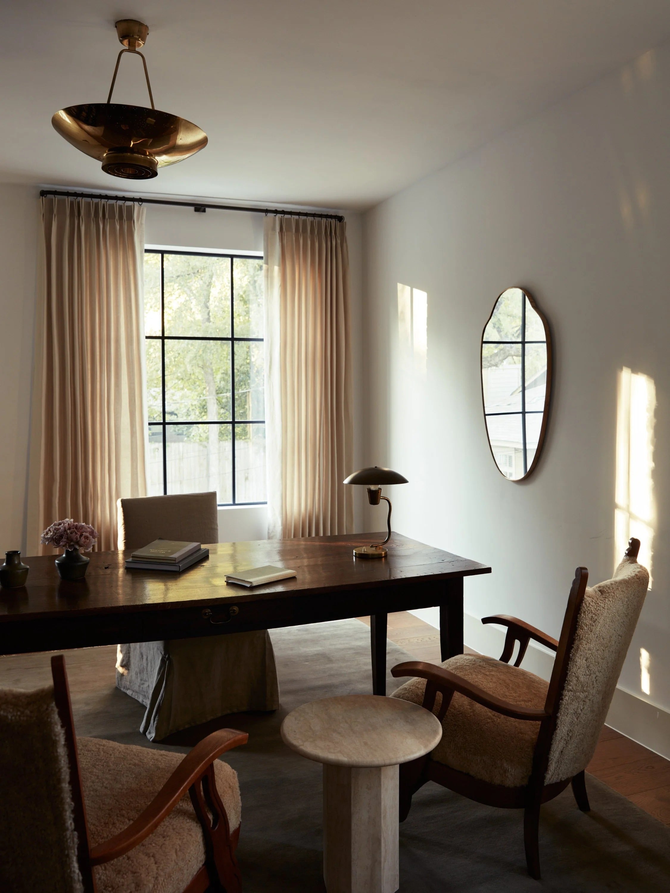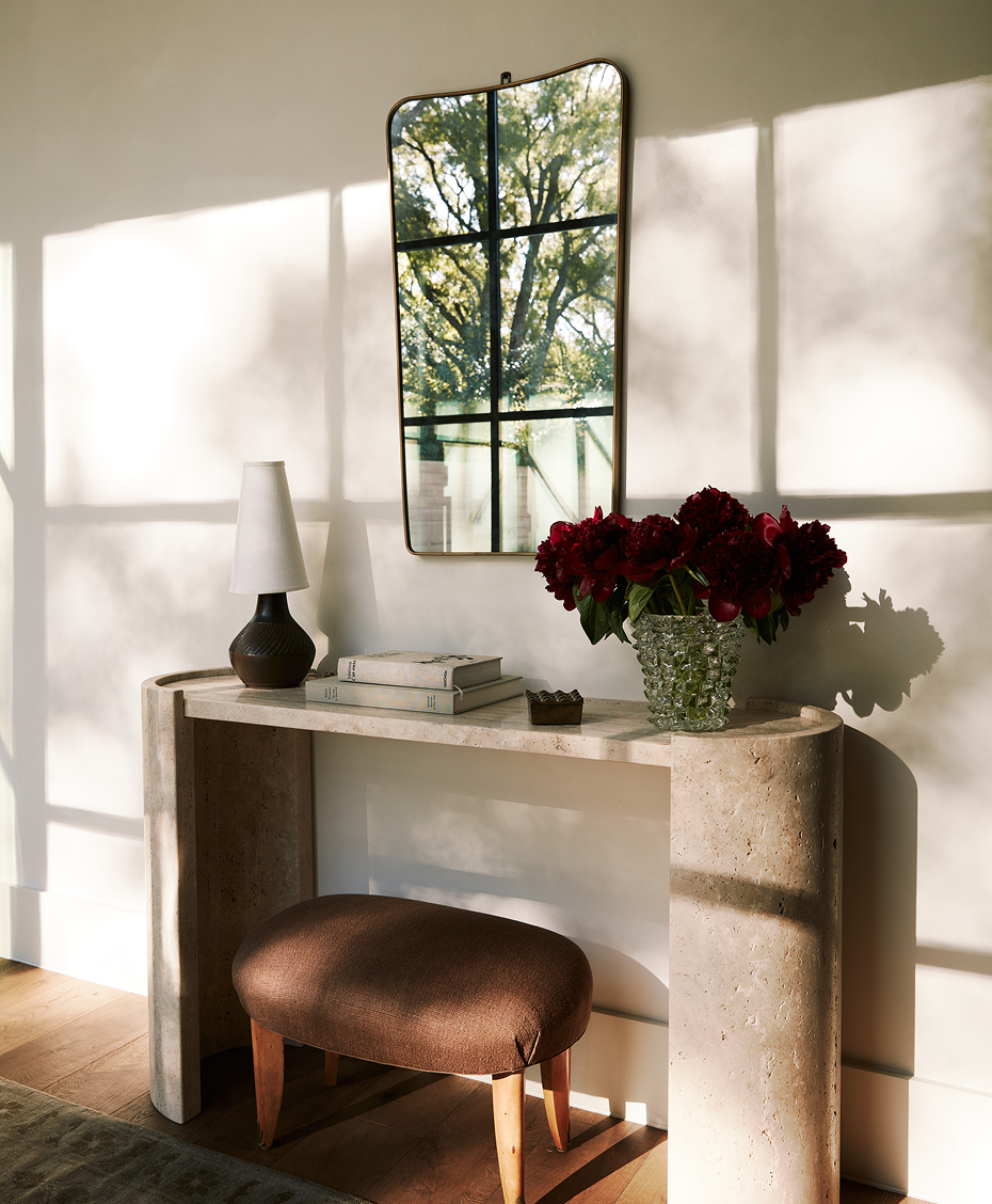 Over 60% of the furnishings are vintage treasures, sourced locally in Texas and from European markets, each piece carefully chosen for its history and soul. The design is rooted in the perfect balance of natural materials, thoughtfully curated moments, and a balance between understated elegance and statement-making drama. The result? A home that’s both elevated and deeply personal—where beauty and function meet seamlessly, creating a space that feels collected over time and is as dynamic as it is inviting.