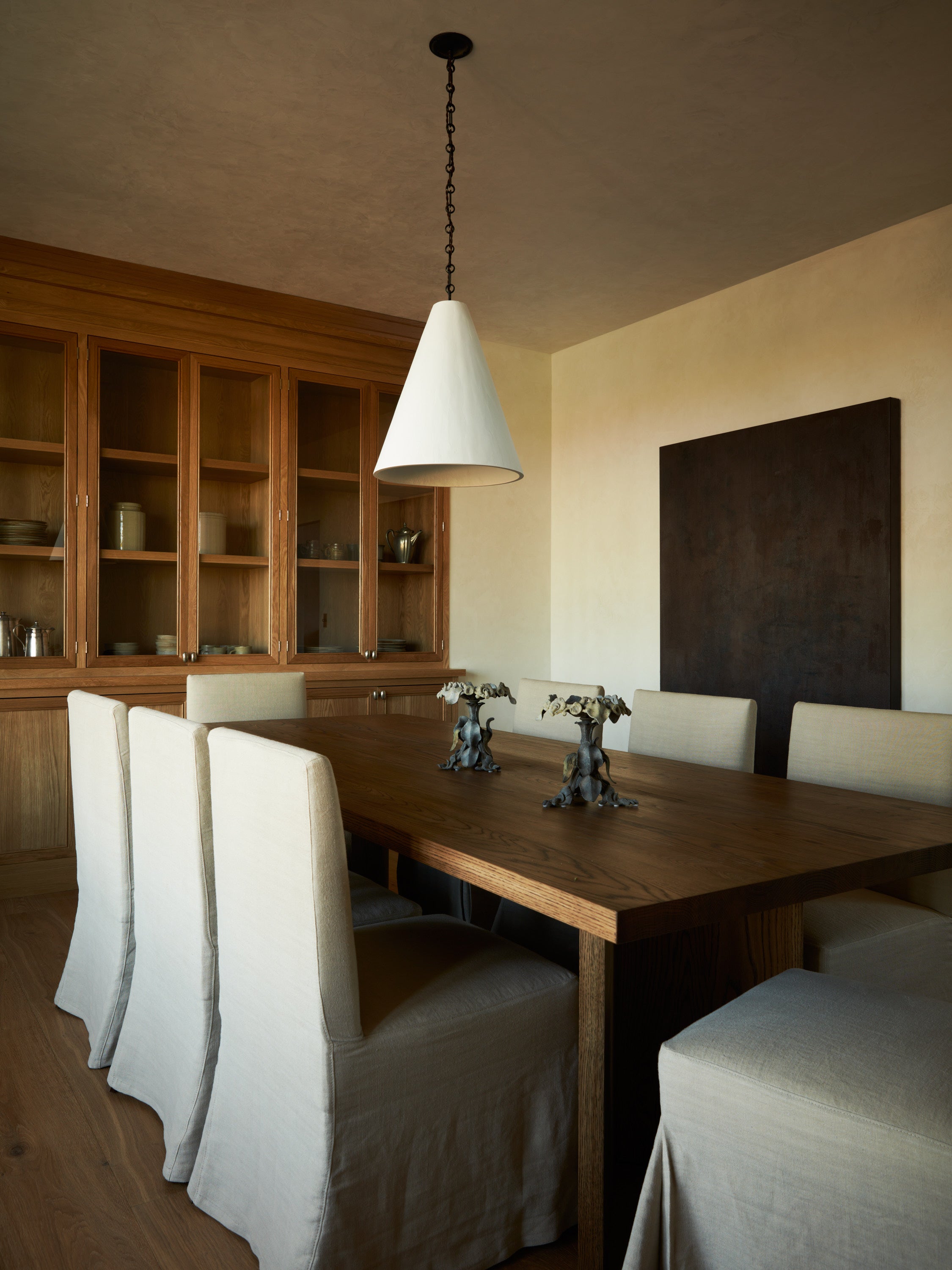 Vintage and bespoke furnishings are layered throughout, each chosen for its patina, craftsmanship, and sense of history. The design is grounded in natural materials, luminous plaster walls, and a restrained palette that balances European romance with Pacific Northwest ease. The result is a home that feels collected over time—elevated yet approachable, refined yet soulful—where every detail contributes to a sense of calm, cohesion, and lived-in elegance.